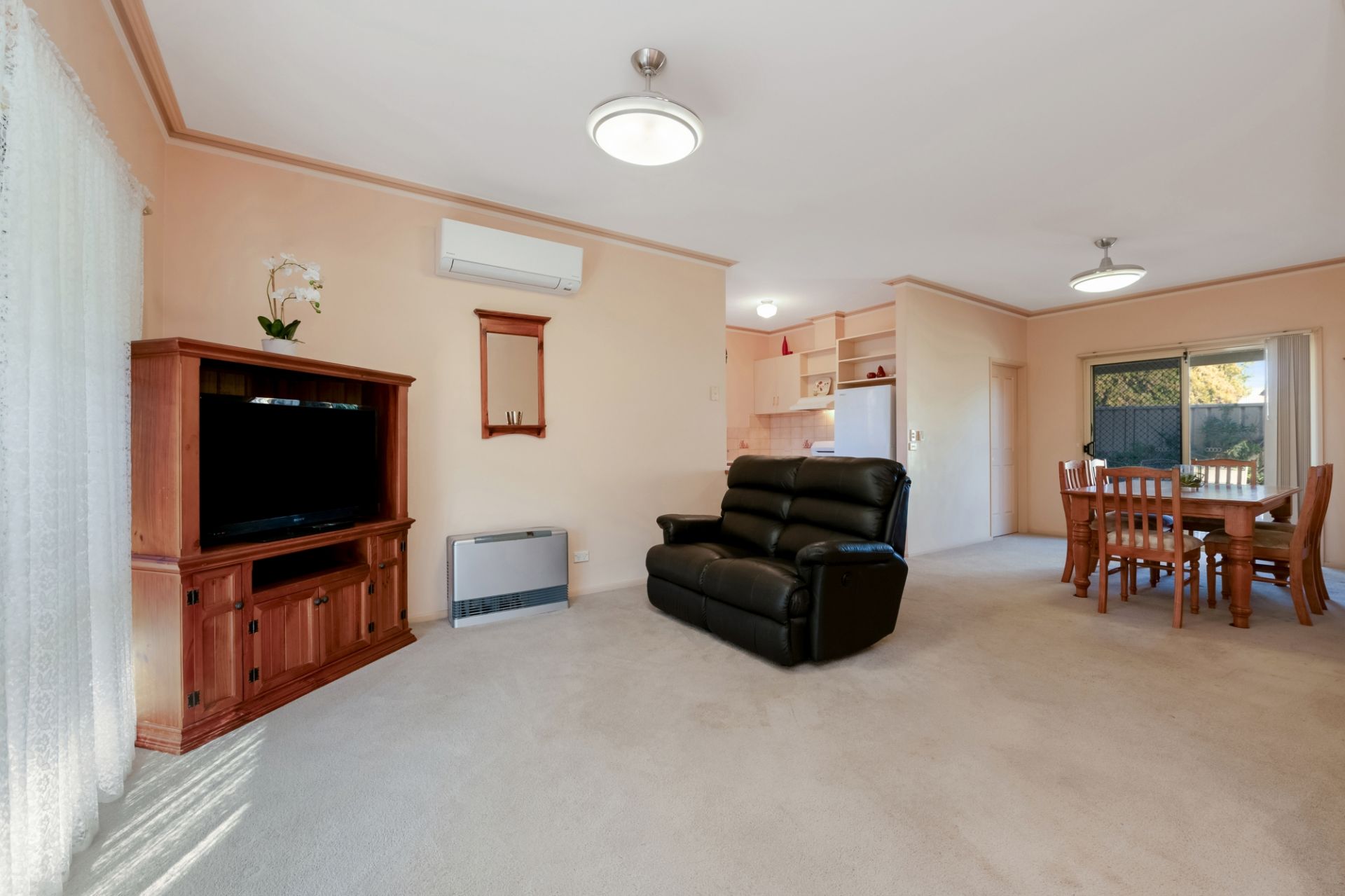 One of only 3 in the complex, this spacious & appealing property offers the perfect low maintenance lifestyle & would suit downsizers, investors or first home buyers. Step from the bullnose veranda into the tiled entry & through to the spacious lounge/dining area. This opens to a practical kitchen containing built in cupboards & an upright stove. The laundry is adjacent while a glass sliding door leads out to the paved entertaining space featuring a vergola. Each of the 3 bedrooms contain built in robes & there's a 3 piece bathroom with a separate toilet adjacent. A split system & ceiling fans maintain climate control throughout the home. Other features include high ceilings, automatic roller blinds, solar panels & a single lock up garage providing internal access. All this in a popular location within a block of La Trobe University & Bendigo South East school, walking distance to Kennington Village & just a short drive to Bendigo CBD.